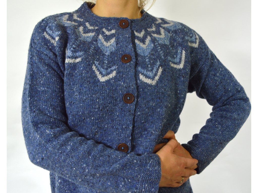 Damenpullover aus exklusivem Donegal-Garn. Er zeichnet sich durch seine feine Textur mit bunten Rissen aus, die jedem Stück einen einzigartigen Look verleihen. Der Pullover ist warm, robust und dennoch angenehm zu tragen. Dank seines traditionellen Schnitts und des Knopfverschlusses lässt er sich leicht kombinieren - vom lässigen Stil bis zum eleganten Outfit. Hergestellt in der Tschechischen Republik mit viel Liebe zu Qualität und Handwerkskunst.