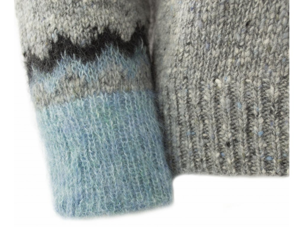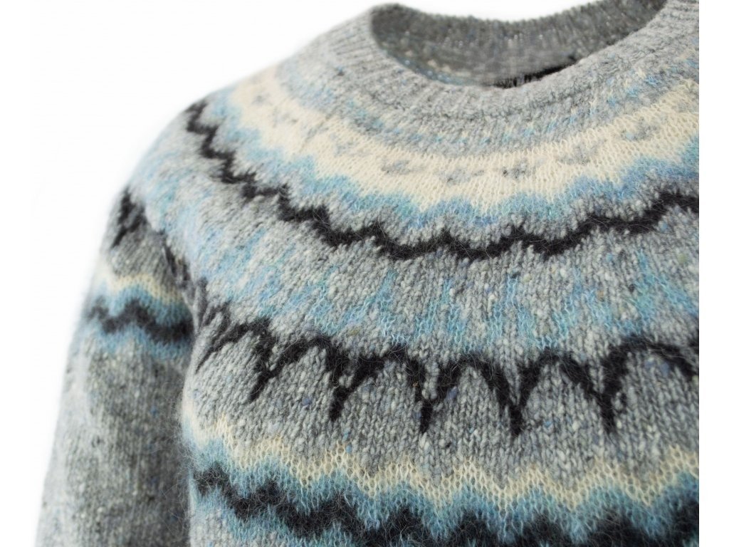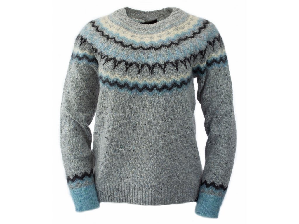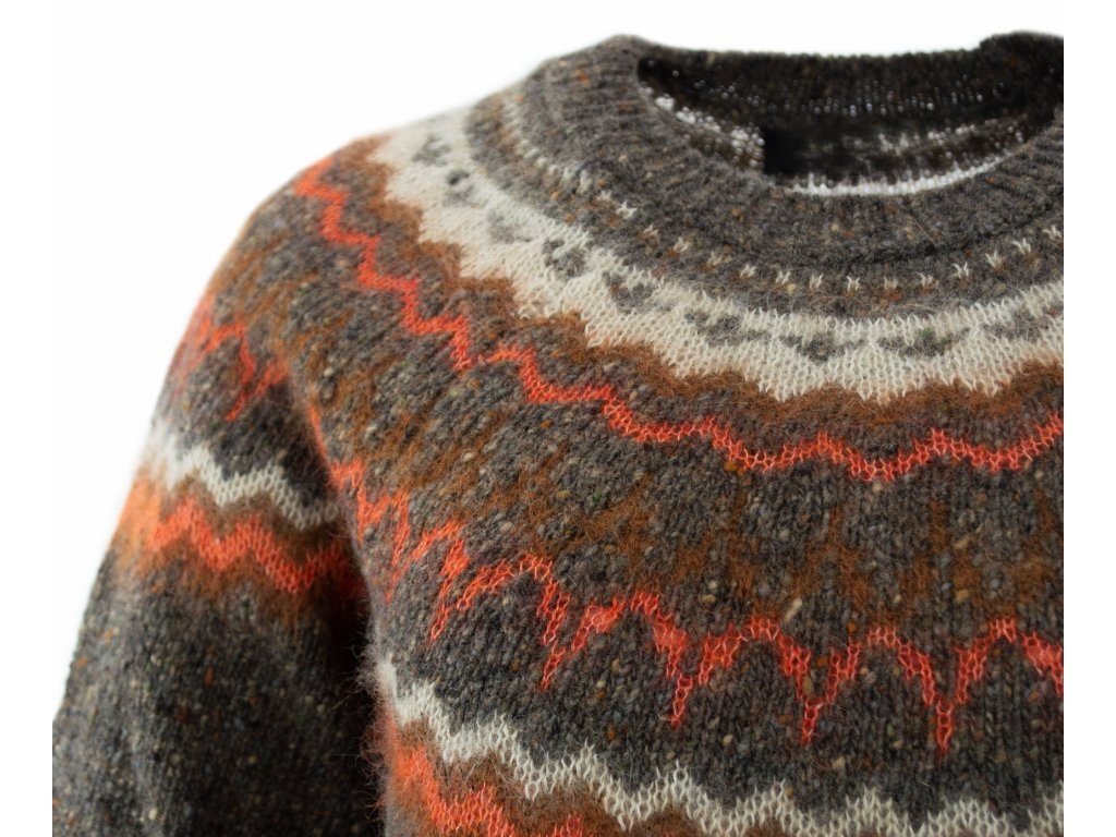Der Damenpullover mit dem traditionellen Fair-Isle-Muster im Dockle-Strick ist einer der meistverkauften Pullover im Vereinigten Königreich. Die mehrfarbigen Stränge aus Donegal-Garn sorgen für einen sehr auffälligen Pullover-Look, der durch das Mohair im Fair-Isle-Muster noch akzentuiert wird. Die Pullover werden in zwei Farbkombinationen angeboten.