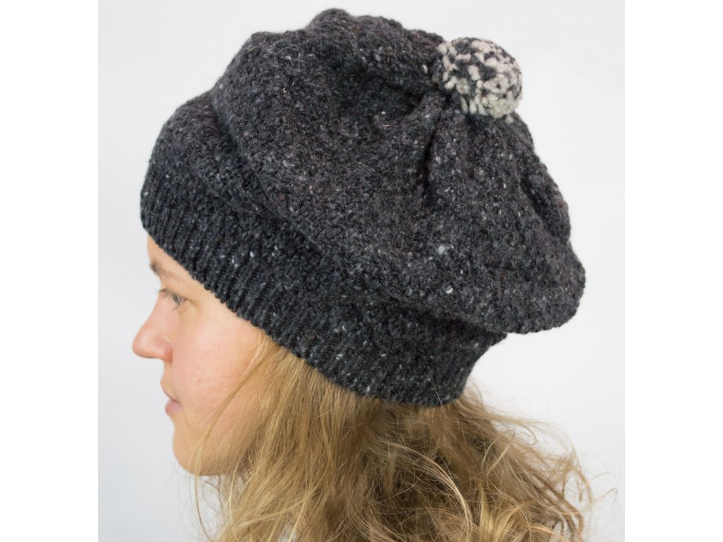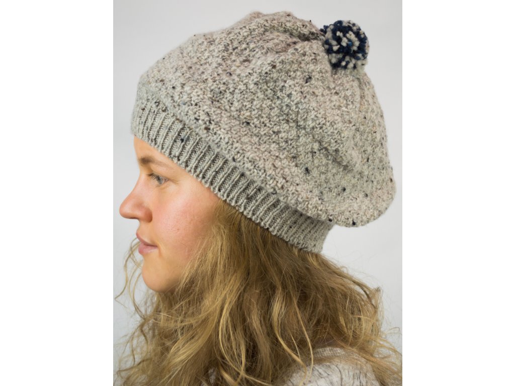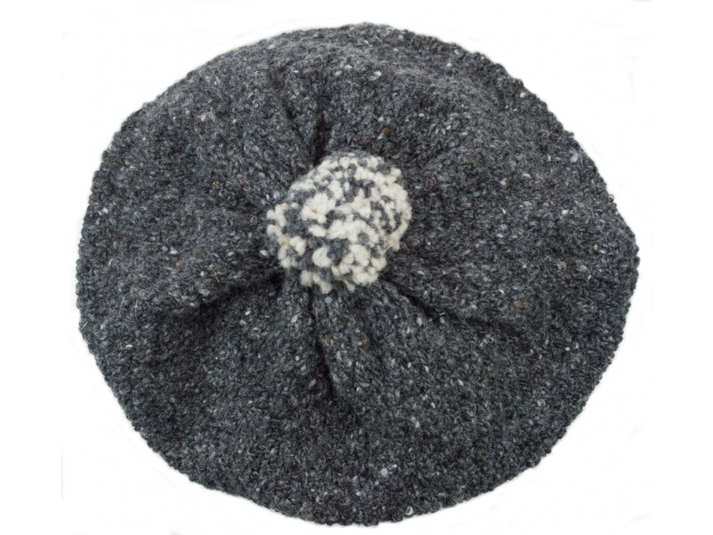Dámská čepice baretového typu. Čepice je vyrobená ze 100% vlny Donegal.
