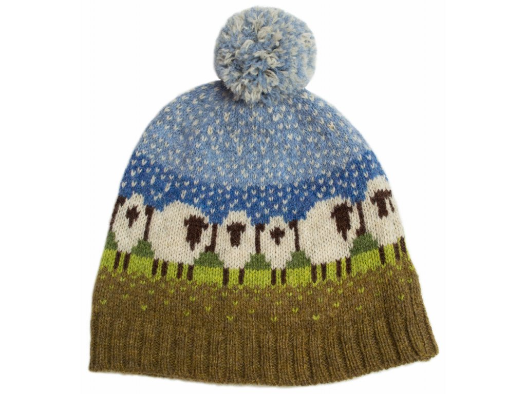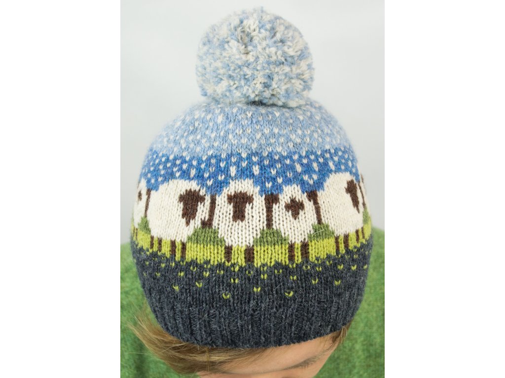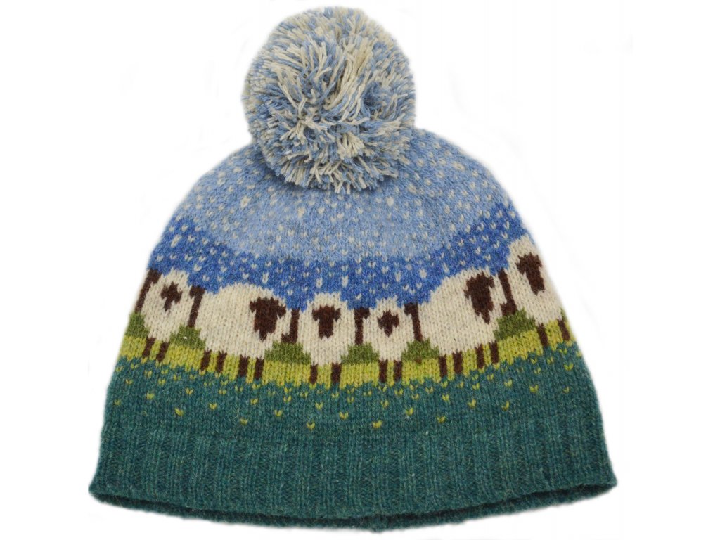 Unisex čepice ze shetlandské vlny s bambulí. Tři barevné kombinace